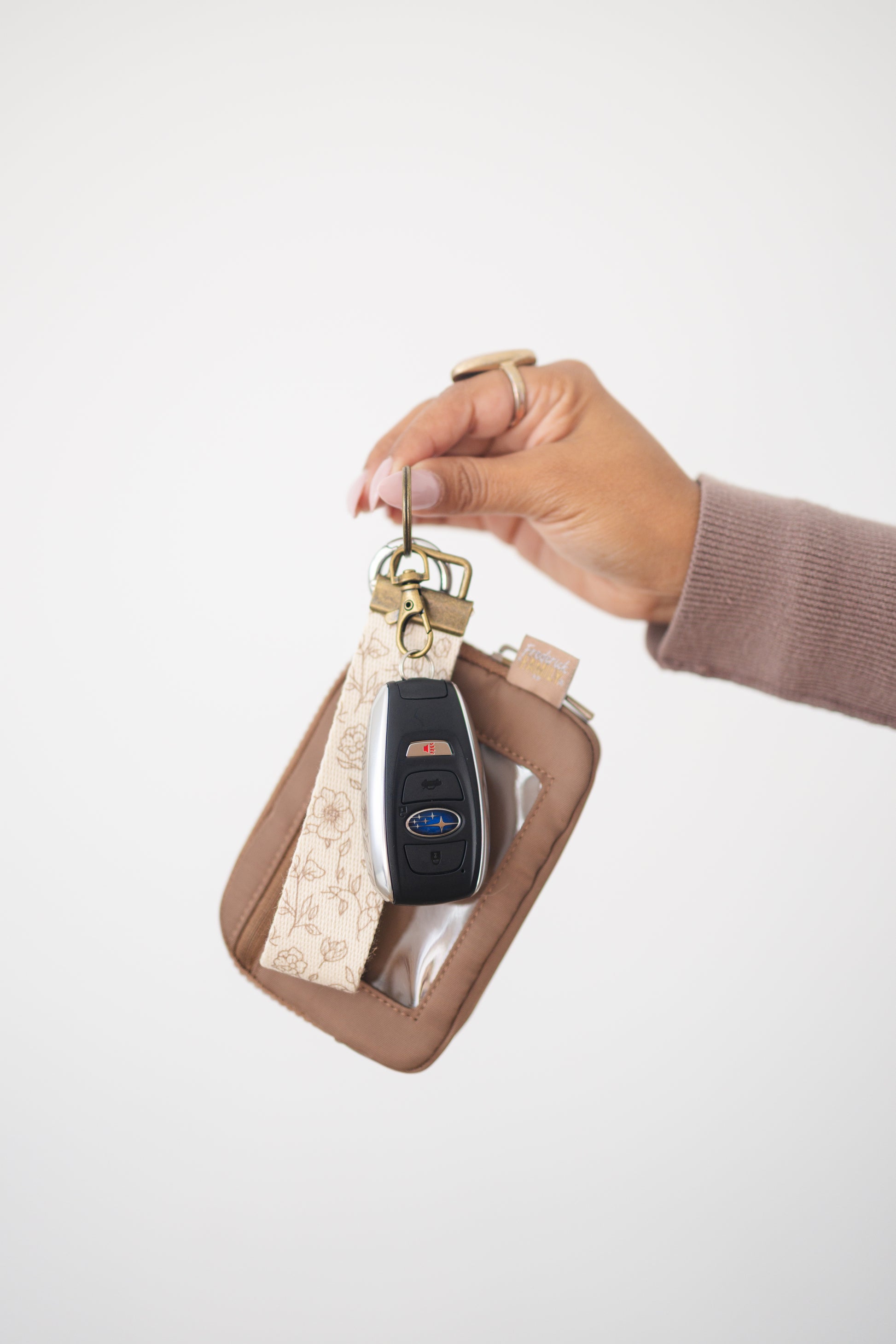Keychain Wallet with Wrist Lanyard, Compact Card Holder Keyring, Stylish Wallet Keychain for Essentials